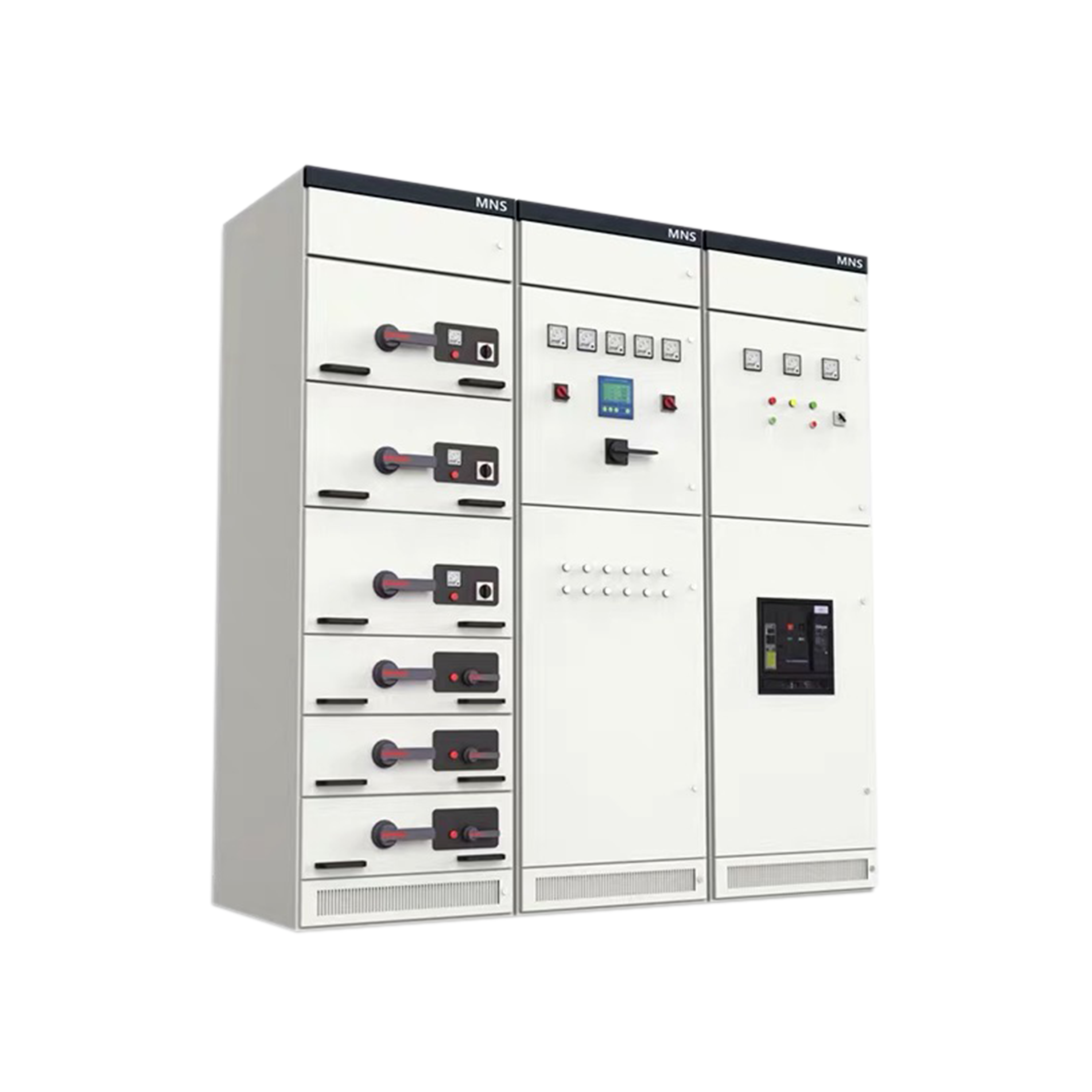 MNS低壓抽出式開關(guān)柜是在ABB公司的MNS系列低壓開關(guān)柜并加以綜合改進后開發(fā)的,是目前國內(nèi)較先進的低壓抽出式開關(guān)設(shè)備。該產(chǎn)品由標(biāo)準(zhǔn)化、成系列模塊組成,抽屜具有可靠的機械聯(lián)鎖裝置,用戶在使用時更安全、更可靠。產(chǎn)品性能符合GB/T 7251.12-2013標(biāo)準(zhǔn)。本產(chǎn)品適用于交流50Hz、額定工作電壓660V及以下的系統(tǒng)。作為各種發(fā)電、輸電、配電、電能轉(zhuǎn)換和電能消耗設(shè)備的控制設(shè)備,能廣泛應(yīng)用于各工業(yè)企業(yè)、商業(yè)樓宇、住宅、市政建設(shè)等低壓配電系統(tǒng)中。經(jīng)過特殊處理后,還可以用于海上石油鉆采平臺和核電站中。