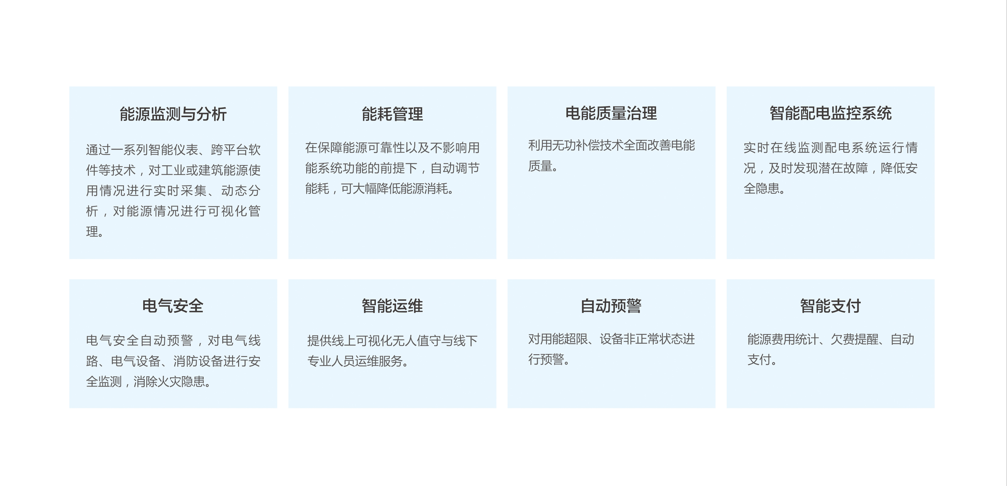 綜合采用物聯(lián)網(wǎng)技術(shù)、數(shù)據(jù)采集與智能分析,為工業(yè)用戶、公共機構(gòu)、商業(yè)住宅、學(xué)校、醫(yī)院等用戶提供一體化的智慧能源管理系統(tǒng)。